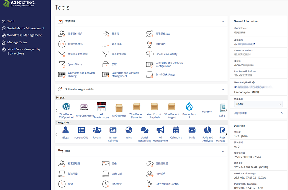 ▼圖 打開cPanel管理界面(以 A2 Hosting為例)