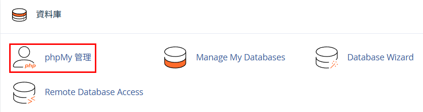 ▼圖 再回到 cPanel 點 phpMy 管理