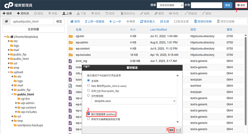 有帶【.】開頭的為隱藏檔案、目錄,打開顯示隱藏檔案,確保接下來的操作可以選取的到。