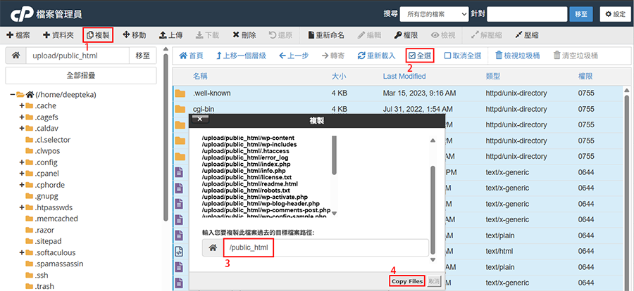 ▼圖 將所有解壓縮後的檔案全部複製到/public_html