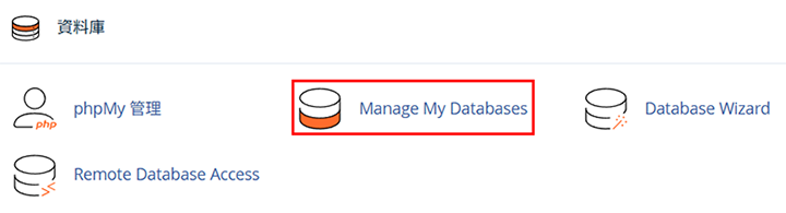 ▼圖 回到 cPanel 點 Manage My Database
