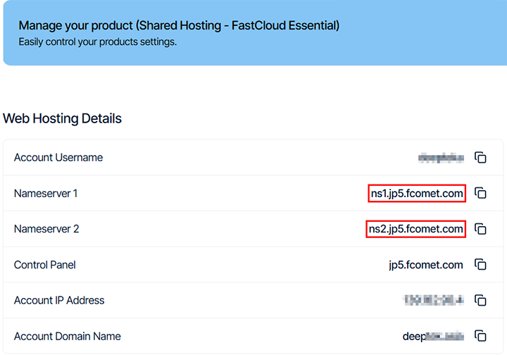 ▼圖 範例Fastcomet 的 Name Server