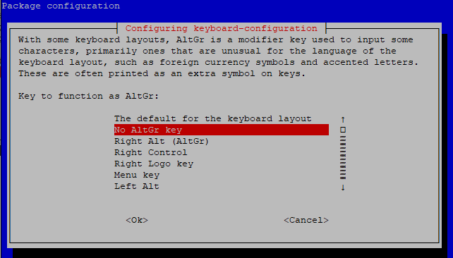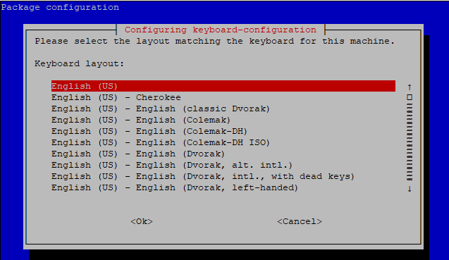 由於我每次裝好樹梅派就是開SSH,然後找Windows 電腦連進去,根本不會在本機使用,所以也沒有認真在設定鍵盤。後來在本機操作想打【cd ~】回到家目錄,結果「~」符號打不出來才覺得鍵盤設定不對。
