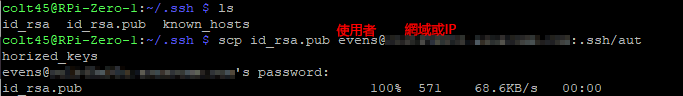 scp id_rsa.pub evens@192.168.100.5:.ssh/authorized_keys #複製公鑰至是伺服器並改名成authorized_keys