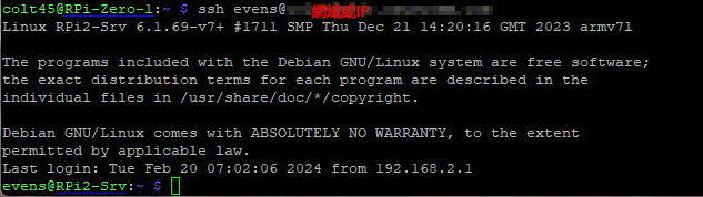 接下來就可以在 操作端電腦RPi-Zero-1 對 伺服器RPi2-Srv 進行SSH操作。